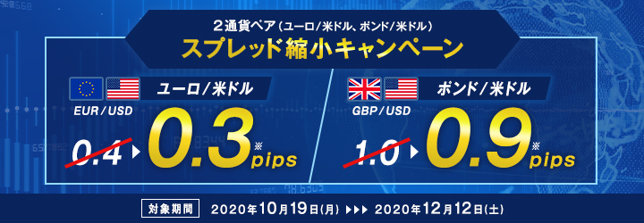 • ※上記スプレッドの対象となるのはミニ・通常の通貨ペアです。大口(新規注文1回あたり110万通貨~300万通貨)の通貨ペアは対象外となります。